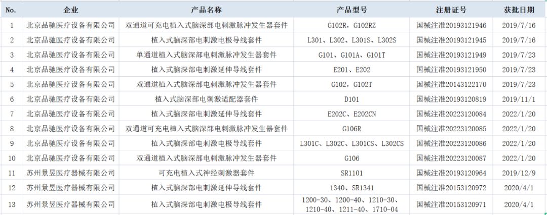 國內(nèi)已獲證的用于帕金森的腦起搏器產(chǎn)品(來源:NMPA)
