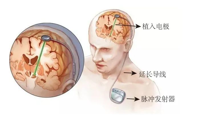 在發(fā)病初期,藥物治療是首選,后期隨著疾病進(jìn)展,藥物逐漸失去療效,就可以使用目前被廣泛認(rèn)可的首選外科療法——腦深部電刺激療法(Deep Brain Stimulation,DBS),也稱腦起搏器,它是一種有源植入醫(yī)療器械,于20世紀(jì)70年代出現(xiàn),是通過立體定向技術(shù),將電極植入腦內(nèi)特定核團(tuán),連接植入胸部的脈沖發(fā)生器,發(fā)放電脈沖對特定核團(tuán)神經(jīng)元的功能進(jìn)行調(diào)控,以改善癥狀,是目前國際上最先進(jìn)的神經(jīng)調(diào)控技術(shù),用于藥物不能有效控制運(yùn)動(dòng)障礙癥狀的帕金森患者。
