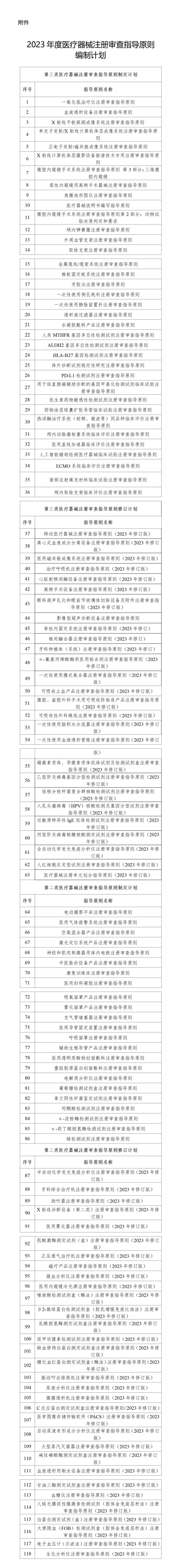 CMDE|2023年度醫(yī)療器械注冊(cè)審查指導(dǎo)原則編制計(jì)劃