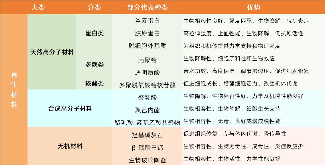 3)對(duì)再生修復(fù)材料需具有生物降解性或吸收性,降解速率應(yīng)與組織再生速率相匹配。