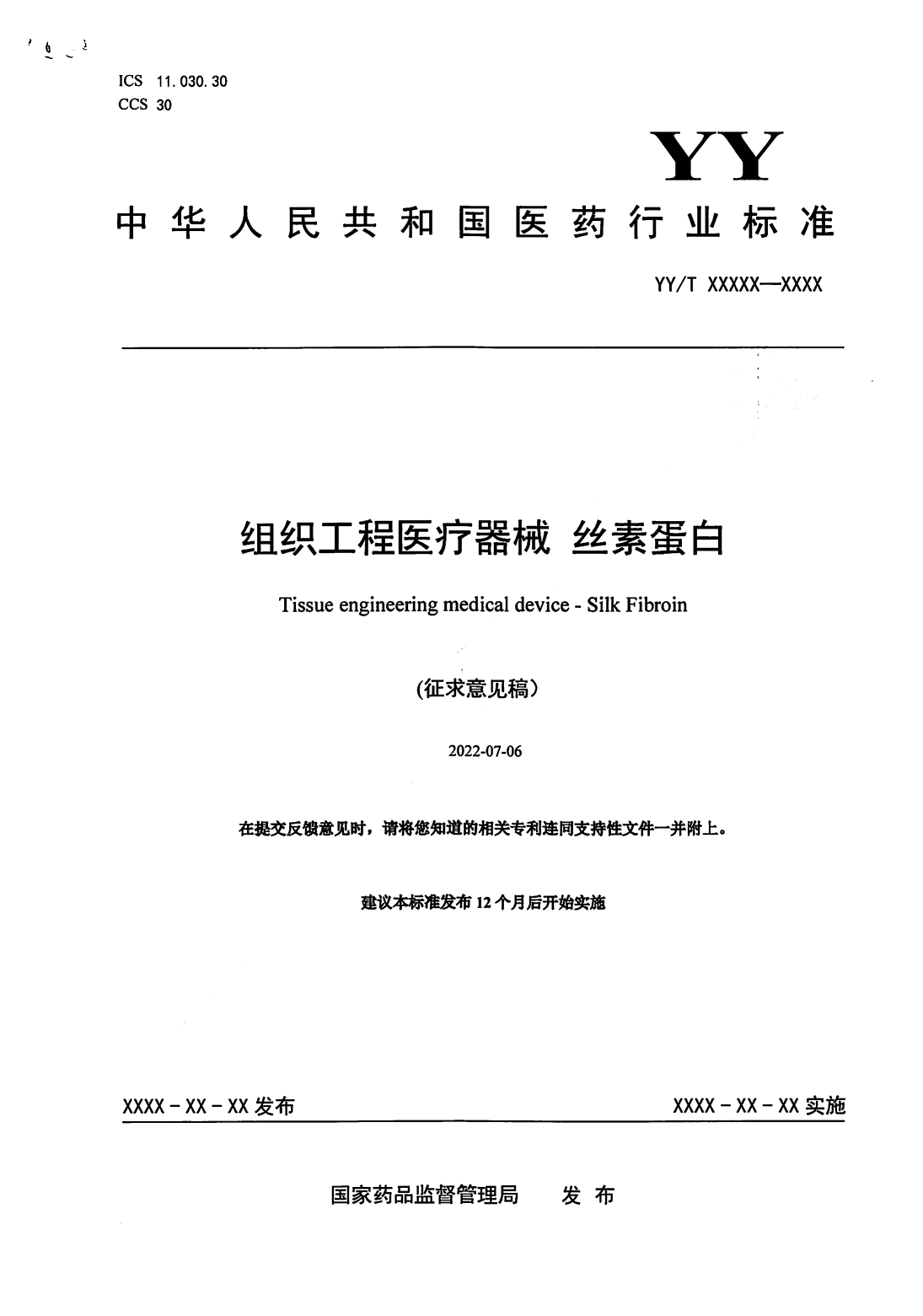 隨著絲素蛋白醫(yī)療器械產(chǎn)品的增加,對(duì)這一材料的生產(chǎn)制備、質(zhì)量控制等提出了要求。相對(duì)于產(chǎn)業(yè)的迅速發(fā)展,絲素蛋白相關(guān)標(biāo)準(zhǔn)在國(guó)際國(guó)內(nèi)仍處于空白。由于標(biāo)準(zhǔn)的缺乏,各絲素蛋白企業(yè)在企業(yè)標(biāo)準(zhǔn)制定過程中無統(tǒng)一的標(biāo)準(zhǔn)參考依據(jù),限制了絲素蛋白醫(yī)療產(chǎn)業(yè)的高質(zhì)量發(fā)展。目前,為提高絲素蛋白材料的質(zhì)量與安全性,為科學(xué)監(jiān)管提供支撐,由全國(guó)外科植入物和矯形器械標(biāo)準(zhǔn)化技術(shù)委員會(huì)組織工程醫(yī)療器械產(chǎn)品分技術(shù)委員會(huì)歸口的《組織工程醫(yī)療器械絲素蛋白》已形成征求意見稿[5],并于2022年8月23日-2022年10月24日期間公開征求意見。