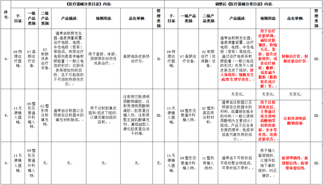 醫(yī)美注射類(lèi)產(chǎn)品是國(guó)家近年來(lái)重點(diǎn)監(jiān)管領(lǐng)域,隨著水光針產(chǎn)品的火熱和市場(chǎng)的良莠不齊,產(chǎn)品濫用、超適應(yīng)癥范圍使用情況增多,國(guó)家藥監(jiān)局標(biāo)管中心出臺(tái)政策規(guī)范了對(duì)于水光針產(chǎn)品的監(jiān)管標(biāo)準(zhǔn)。2022年3月30日,國(guó)家藥監(jiān)局發(fā)布實(shí)施《關(guān)于調(diào)整<醫(yī)療器械分類(lèi)目錄>部分內(nèi)容的公告(2022年第30號(hào))》,對(duì)部分醫(yī)美產(chǎn)品監(jiān)管類(lèi)別作出調(diào)整,其中明確注射用透明質(zhì)酸鈉溶液按照III類(lèi)器械進(jìn)行監(jiān)管。政策的落地,促使生產(chǎn)廠(chǎng)家積極申報(bào)III類(lèi)醫(yī)療器械注冊(cè)證,具有III類(lèi)醫(yī)療器械注冊(cè)證的水光產(chǎn)品有望加速上市。