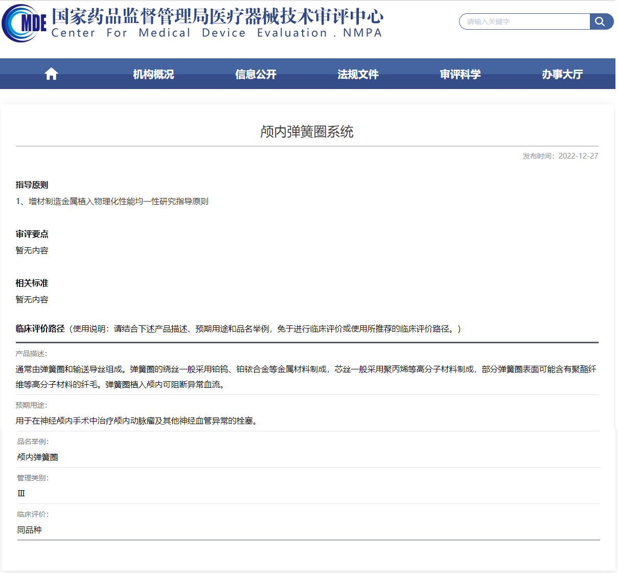 國家器審中心關(guān)于顱內(nèi)彈簧圈的臨床路徑概述