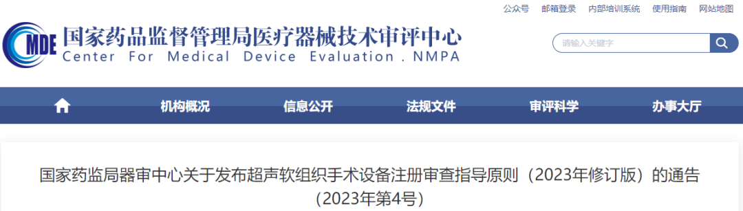 ●2023年3月31日,國家藥監(jiān)局器審中心修訂發(fā)布了《超聲軟組織手術(shù)設(shè)備注冊(cè)審查指導(dǎo)原則》(2023年修訂版)。(附件:超聲軟組織手術(shù)設(shè)備注冊(cè)審查指導(dǎo)原則(2023年修訂版)