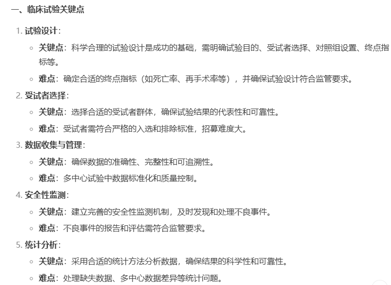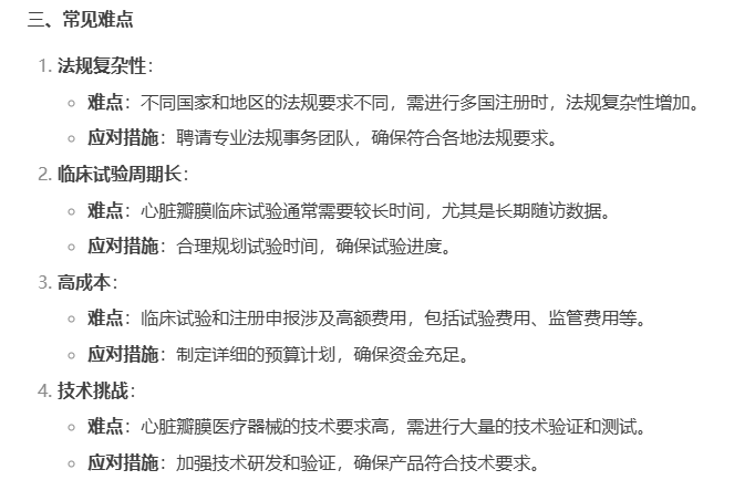 然而,每一項創(chuàng)新技術(shù)的臨床應用,都離不開嚴謹?shù)呐R床試驗驗證。心臟瓣膜醫(yī)療器械的臨床試驗和注冊申報是一個復雜且嚴格的過程,其中涉及的多個關(guān)鍵環(huán)節(jié)和潛在難點,關(guān)于這些,看看當下最熱門 AI工具deepseek怎么說吧~