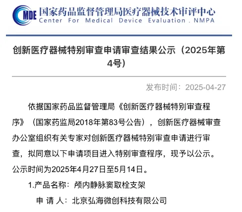 近日,我司自主研發(fā)的腦靜脈介入治療產(chǎn)品顱內(nèi)靜脈竇取栓支架,已正式進(jìn)入國家創(chuàng)新醫(yī)療器械特別審批程序(綠色通道)!  這是對(duì)我們團(tuán)隊(duì)技術(shù)實(shí)力與臨床價(jià)值的權(quán)威認(rèn)可,也標(biāo)志著中國腦靜脈疾病治療邁入全新階段。