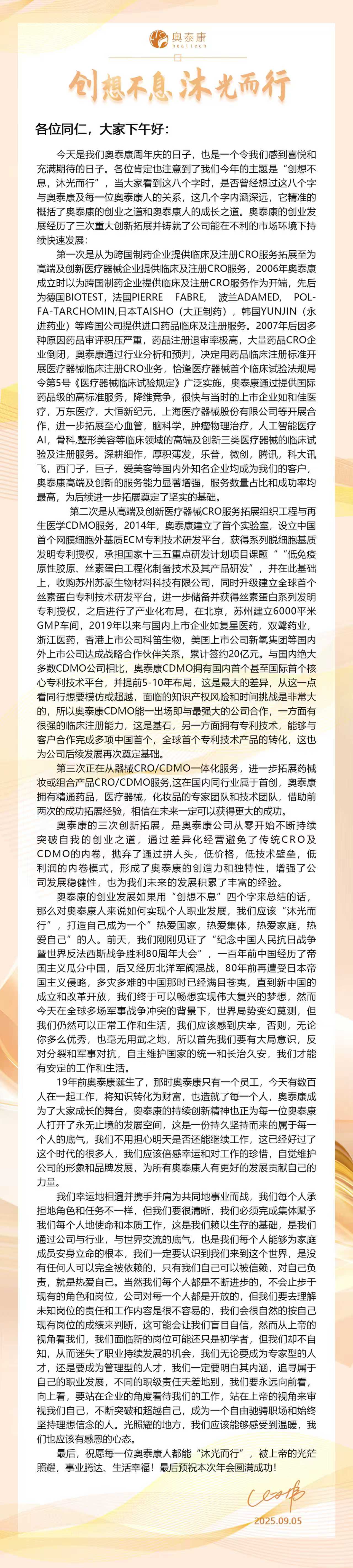 創(chuàng)想不息·沐光而行,2025奧泰康「集團(tuán)周年慶」暨頒獎典禮落幕金秋禮贊,華章日新