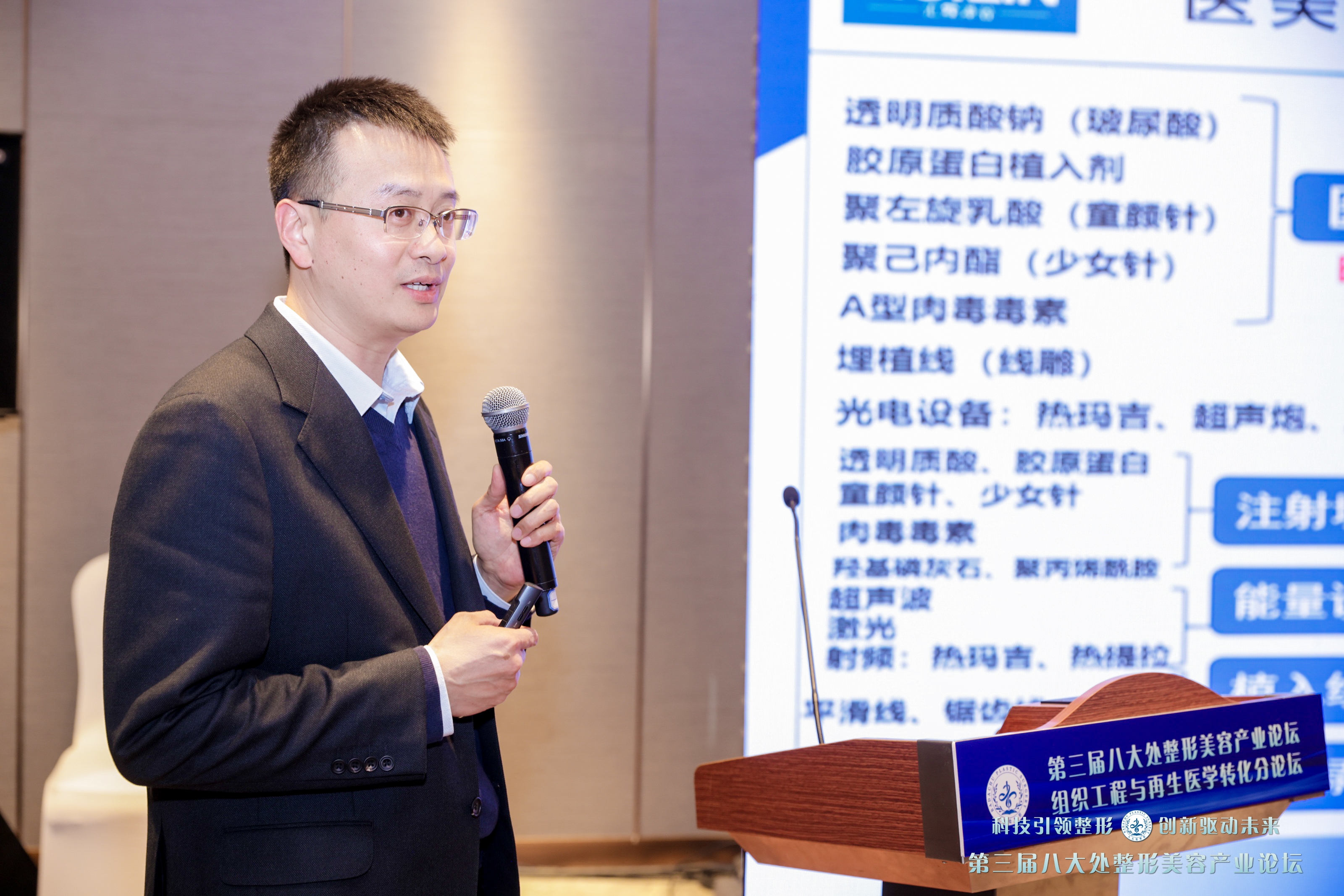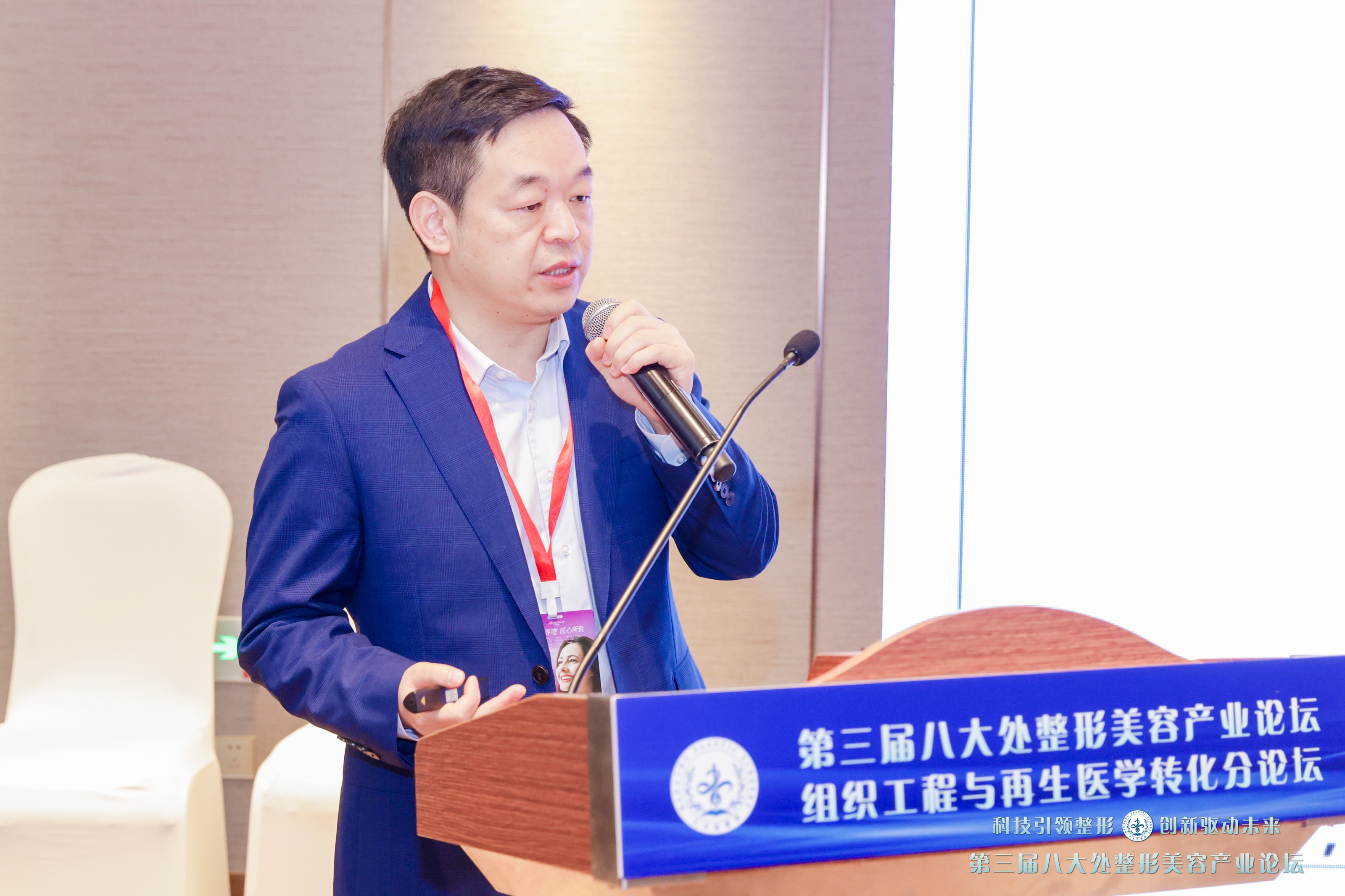 北京奧泰康醫(yī)藥技術(shù)開發(fā)有限公司總經(jīng)理饒義偉先生立足《組織工程與再生醫(yī)學(xué)在醫(yī)美領(lǐng)域的應(yīng)用與發(fā)展》,從組織工程與再生醫(yī)學(xué)的發(fā)展歷程和最新成果出發(fā),圍繞生物醫(yī)用材料,干細胞及外泌體,核酸類及生長因子等在醫(yī)美領(lǐng)域的應(yīng)用進展進行了詳細闡述,并展望其在醫(yī)美領(lǐng)域的發(fā)展方向,期待與大家一道共同實現(xiàn)醫(yī)美新技術(shù)和新產(chǎn)品的臨床轉(zhuǎn)化與應(yīng)用,實現(xiàn)“再生醫(yī)美”時代,為行業(yè)發(fā)展做出貢獻。