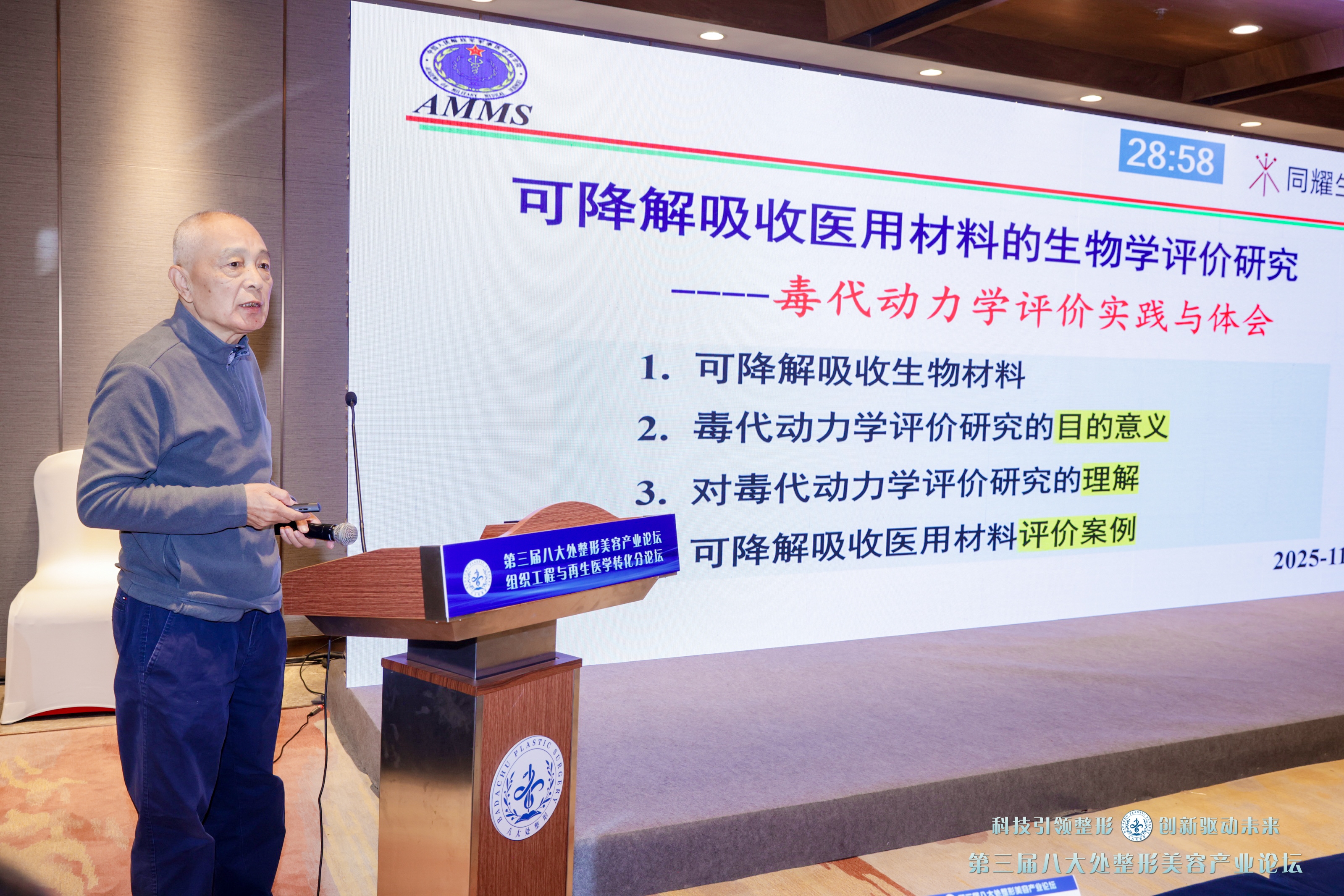 原軍事科學(xué)院軍事醫(yī)學(xué)研究院研究員、CMDE/CDE咨詢專家張振清教授介紹了《可降解吸收醫(yī)用材料的生物學(xué)評價研究——毒代動力學(xué)評價實踐與體會》。他強調(diào),毒代動力學(xué)評價對確保材料臨床安全性、理解毒性機制及支撐材料研發(fā)至關(guān)重要,包括暴露 - 毒性關(guān)系分析、安全范圍評估和降解產(chǎn)物行為分析。他還分享了放射性標(biāo)記示蹤等關(guān)鍵技術(shù),并結(jié)合硬腦膜封合膠、止血紗布等案例,闡釋了毒代動力學(xué)在材料生物學(xué)評價中的實踐應(yīng)用與科學(xué)價值。