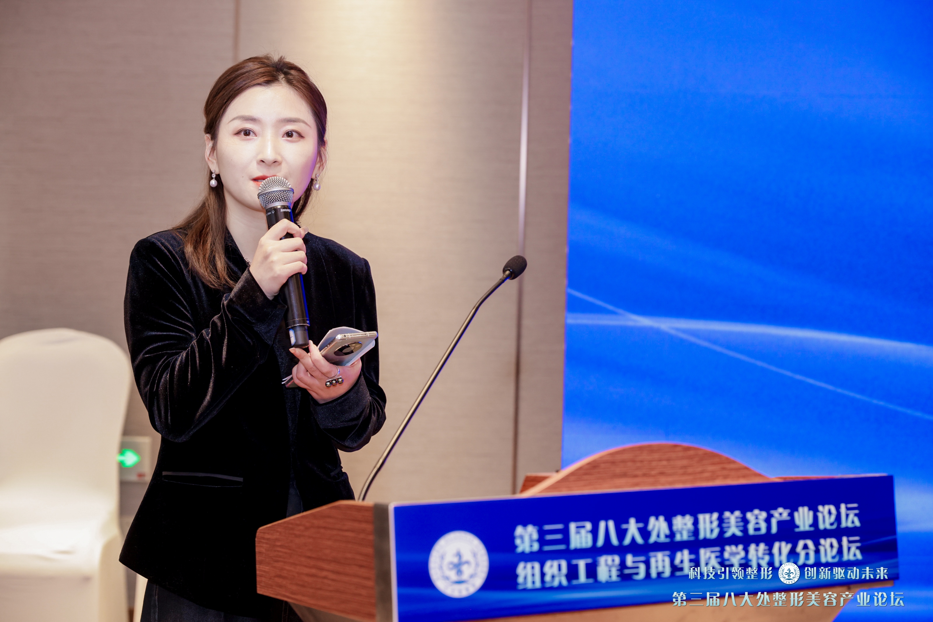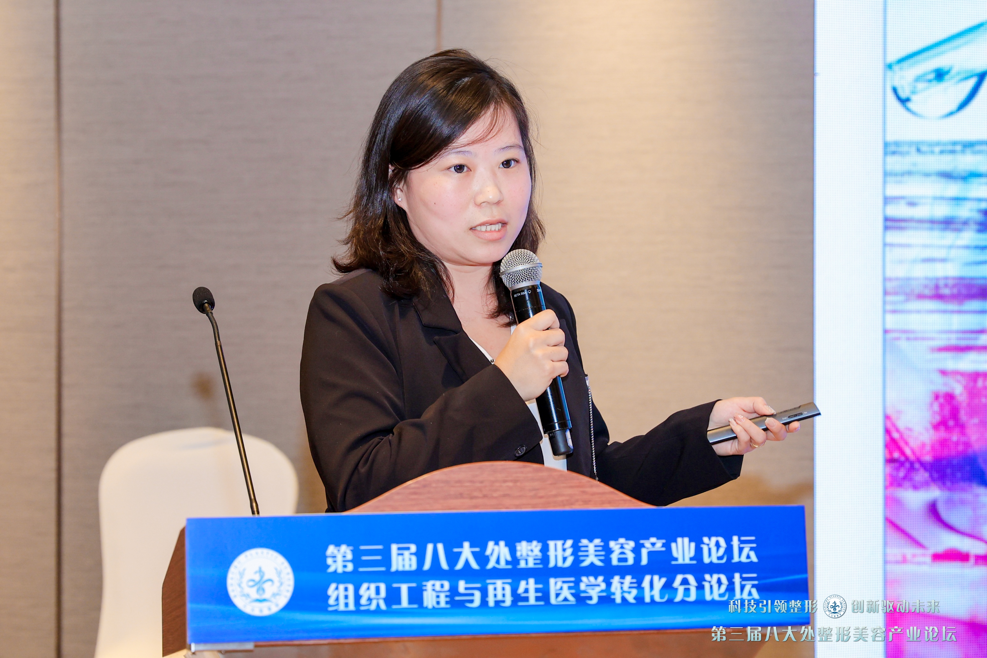 北京帝康醫(yī)藥投資管理有限公司總經(jīng)理助理趙慧女士代表王海濱教授發(fā)表了題為《脫細胞基質(zhì)生物材料的應(yīng)用及其產(chǎn)業(yè)化》的演講,她詳細闡述了脫細胞基質(zhì)分類、生物學(xué)功能及技術(shù)難點。重點討論了其在骨、軟骨、血管等組織修復(fù)中的應(yīng)用,以及作為醫(yī)美填充材料的潛力。此外,還介紹了脫細胞基質(zhì)材料的產(chǎn)業(yè)化現(xiàn)狀、已上市產(chǎn)品及在研項目,并通過動物試驗和臨床案例驗證了其安全性和有效性。